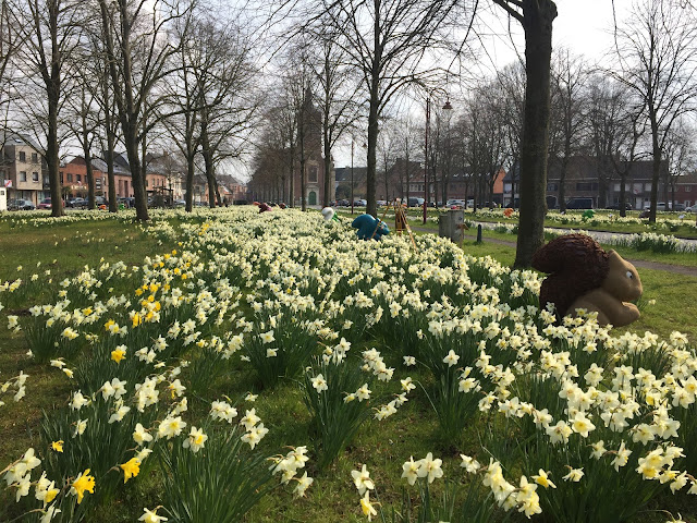 W zeszłym tygodniu odwiedziliśmy też z Młodym park w sąsiedniej gminie, gdzie kwitnie morze żonkili a pomiędzy nimi poustawiano 180 plastikowych fantazyjnie ozdobionych wiewiórek. Obejrzeliśmy, pospacerowali i nagrali nowe wideo. Miło spędzony czas. Mamy piękną wiosnę tego roku i z niej korzystamy. Gdy słońce świeci, chce się żyć i cieszyć każdym dniem, nawet jak to dzień spędzony w łóżku z ksiażką…
